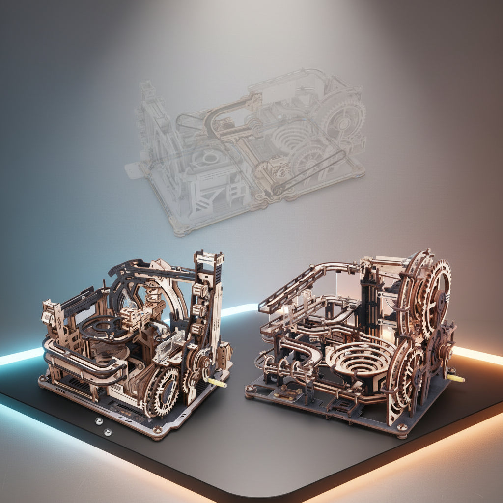 Ses parois ultra-transparentes PC/PS révèlent chaque mouvement des billes à travers 5 pistes et 6 mécanismes de déviation sophistiqués