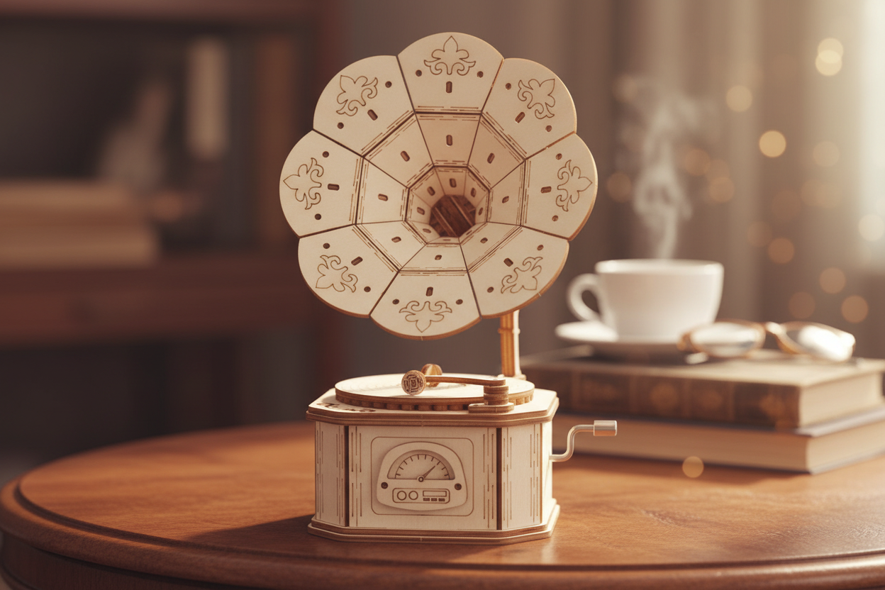 Gramophone Musical 3D en Bois | Boîte à Musique Puzzle DIY | 4 Mélodies Disponibles