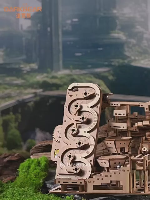 Regardez les billes dévaler ce circuit en bois et laissez-vous hypnotiser par la magie
